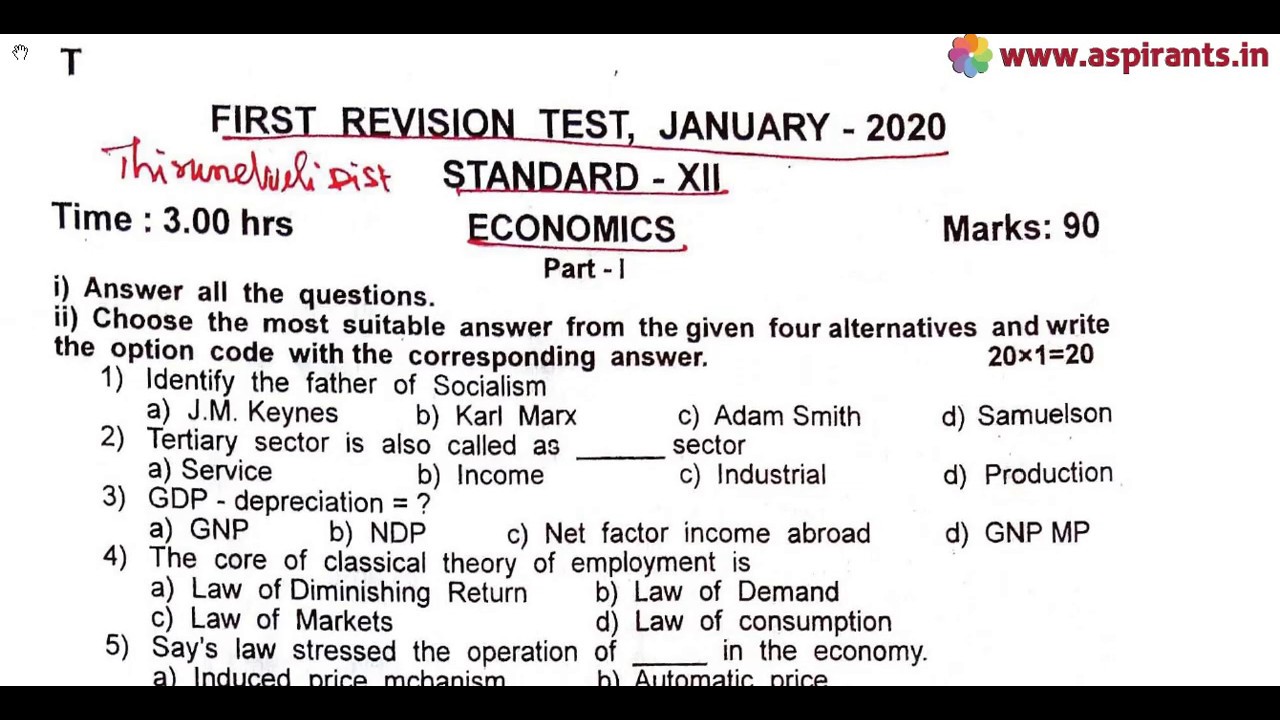 Click here to Download PDF (12th Economics First Revision Question Paper 2019-20 | Tirunelveli District | English Medium) - https://www.aspirants.in/p/12th-economics-first-revision-question_12.html