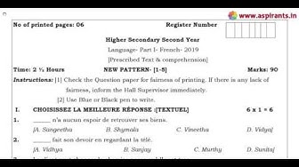 12th French Quarterly Exam 2019-20 Model Question Paper-1 | Chennai District | Team Aspirants
