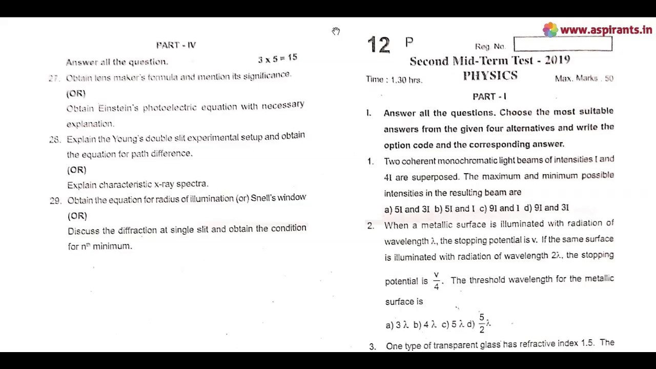 Team Aspirants Provides a clear and special Guidance for all 12th Students. Aspirants Team Provides 12th Physics 2nd Mid Term 2019-20 Question Papers and Answer Keys ( Previous year Question Papers). Now the 2nd Mid Term Examinations are conducted on the content of Samacheer Kalvi Text Books throughout Tamilnadu. This time our team has taken a keen effort to provide more study materials in order to help the Students. So we have covered the maximum and we are sure that we will instantly update more study materials for 12th Standard Exams. These Answer Keys are prepared by well-versed subject teachers. So that the students and teachers can analyse the best one for their evaluation.