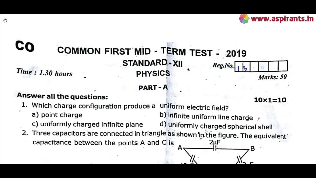 Team Aspirants Provides a clear and special Guidance for all 12th Students. Aspirants Team Provides 12th Standard Physics First Mid Term Test 2019 - 2020 Question Papers and Answer Keys ( Previous year Question Papers). This time our team has taken a keen effort to provide more study materials in order to help the Students. So we have covered the maximum and we are sure that we will instantly update more study materials for 12th Standard Exams.