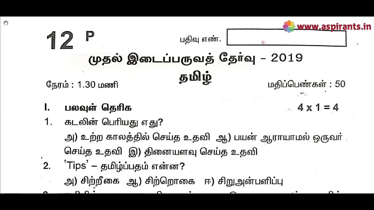 Click here to Download PDF (12th Tamil First Mid Term Question Paper 2019-20 | Tirupur District) - https://www.aspirants.in/p/12th-tamil-first-mid-term-question_2.html