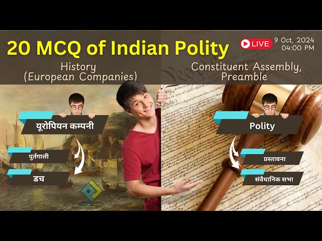 20 MCQ of Indian Polity | Constituent assembly, preamble | History European companies