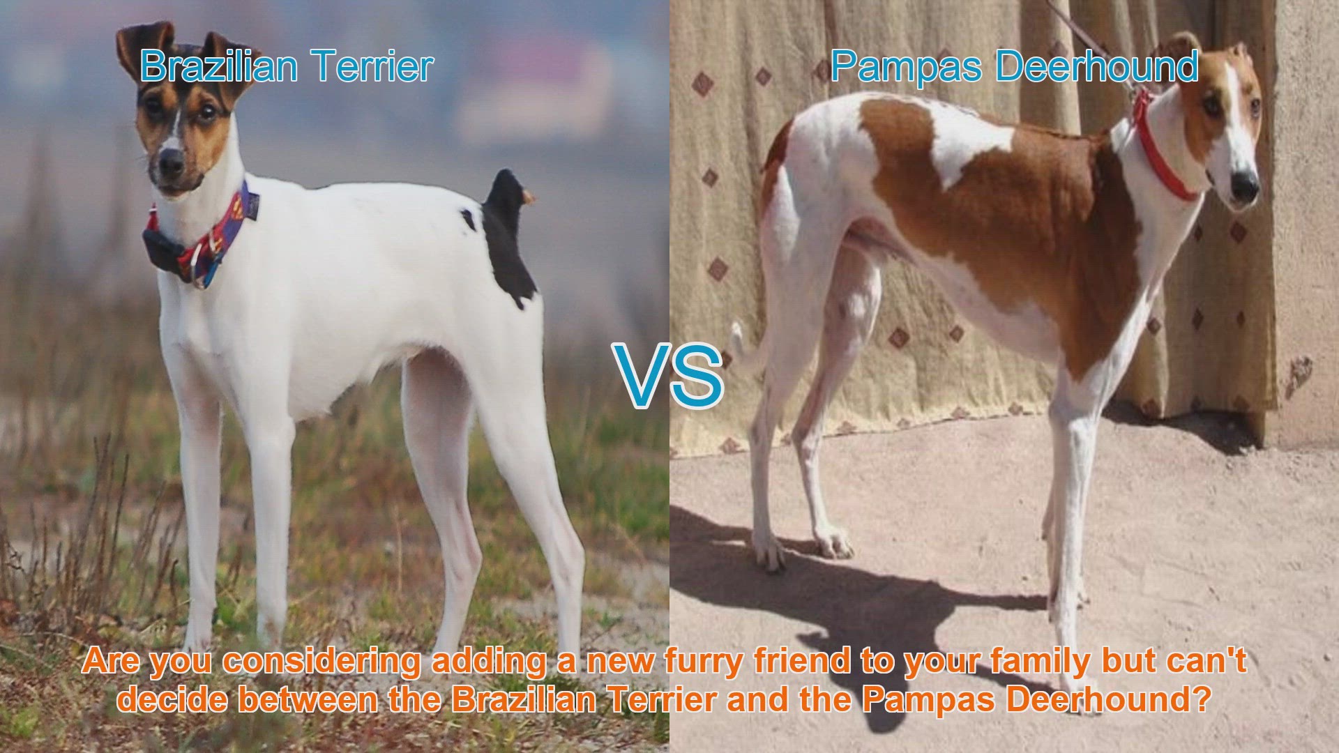Discover the distinct characteristics of the Brazilian Terrier and the Pampas Deerhound to assist you in selecting the ideal furry friend for your family. From the energetic and playful Brazilian Terrier to the larger, gentle Pampas Deerhound, explore their traits, temperaments, and suitability for different lifestyles. Make an informed decision based on your preferences and needs to find the perfect match for your home. Remember, every dog deserves love and care. Watch now to make the right choice for your new furry companion!