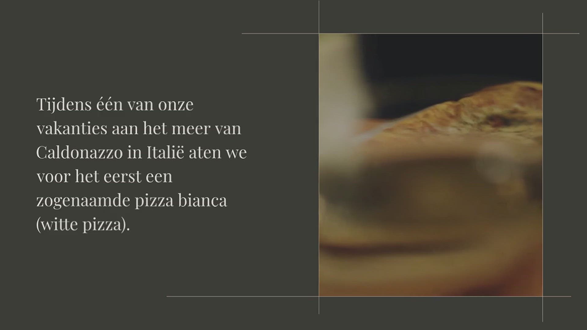 Tijdens één van onze vakanties aan het meer van Caldonazzo in Italië aten we voor het eerst een zogenaamde pizza bianca (witte pizza). Dat is de verzamelnaam voor pizza’s zonder de traditionele basis van tomatensaus. Deze pizza was de streekspecialiteit, de pizza Valsugana.