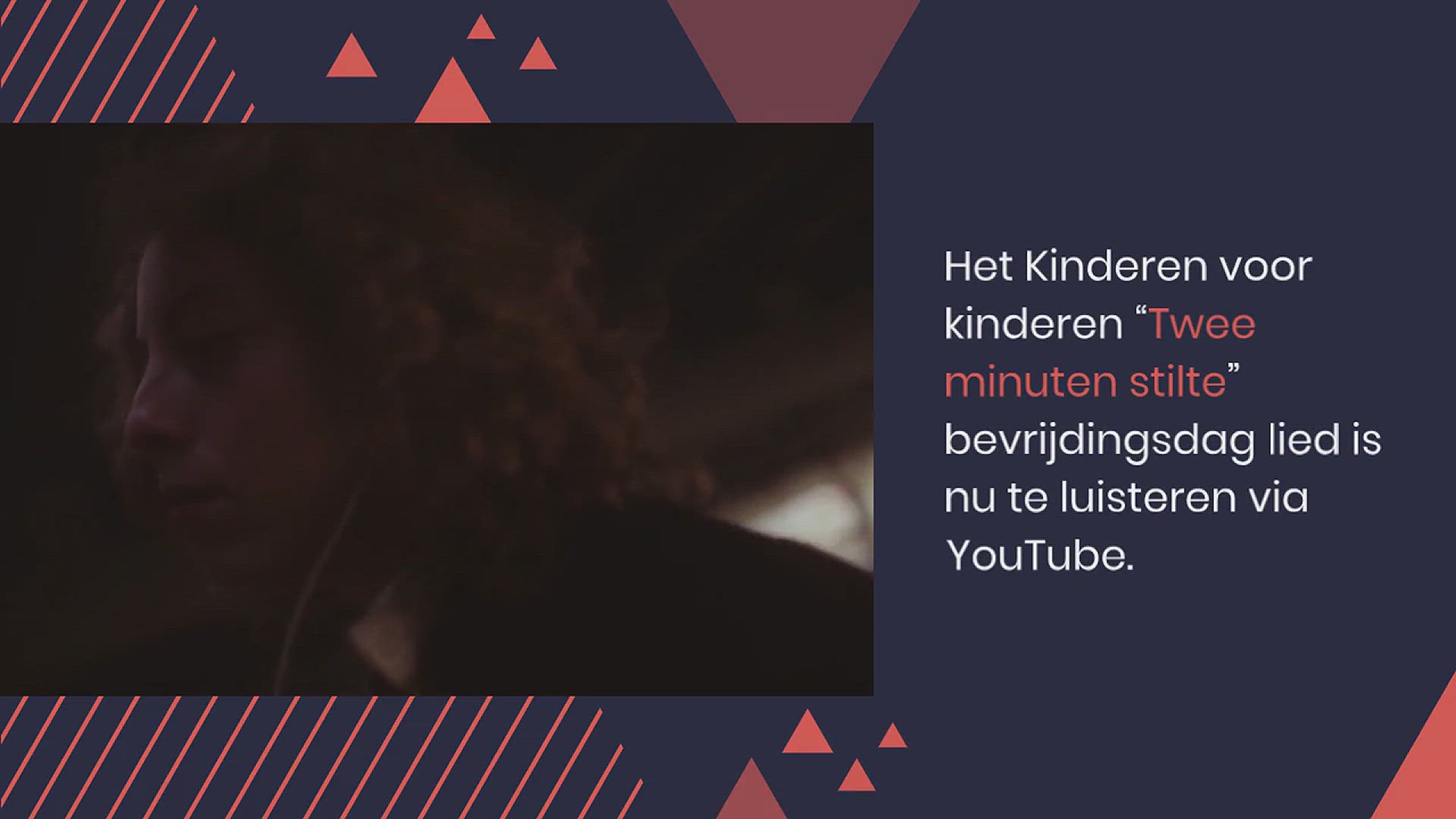 Het Kinderen voor kinderen “Twee minuten stilte” bevrijdingsdag lied is nu te luisteren via YouTube. Dit nummer is uitgebracht in samenwerking met het Nationaal Comité 4 en 5 mei en heeft als doel om het herdenken en vieren van vrijheid bewuster te maken voor kinderen.