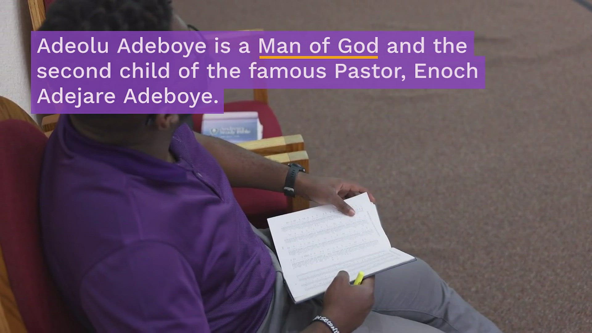 Furthermore, Adeolu Adeboye is the Team leader of a department tasked with ensuring security and that traffic control is maintained in the church grounds.