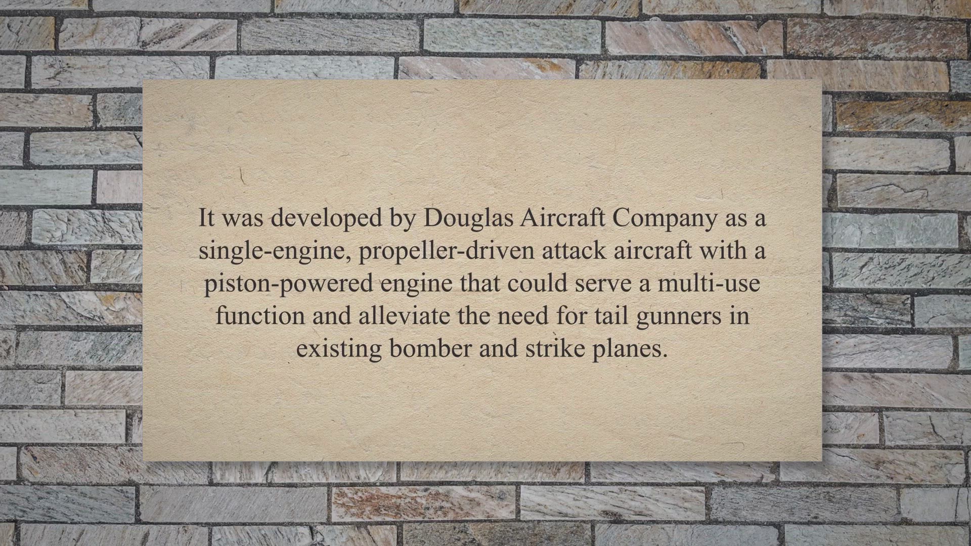 Douglas AD-4 Skyraider was originally intended as a Second World War dive/torpedo bomber. It was developed by Douglas Aircraft Company as a single-engine,