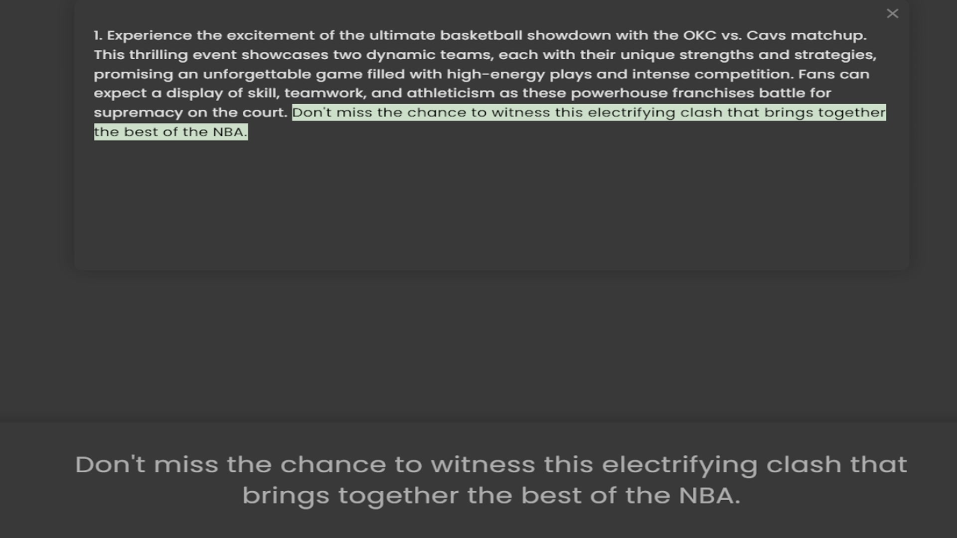 1. Experience the excitement of the ultimate basketball showdown with the OKC vs. Cavs matchup. This thrilling event showcases two dynamic teams, each with their unique strengths and strategies, promising an unforgettable game filled with