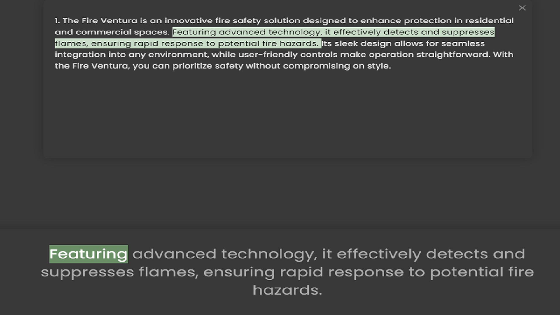 and commercial spaces. Featuring advanced technology, it effectively detects and suppresses flames, ensuring rapid response to potential fire hazards. Its sleek design allows for seamless integration into any environment, while user-frien