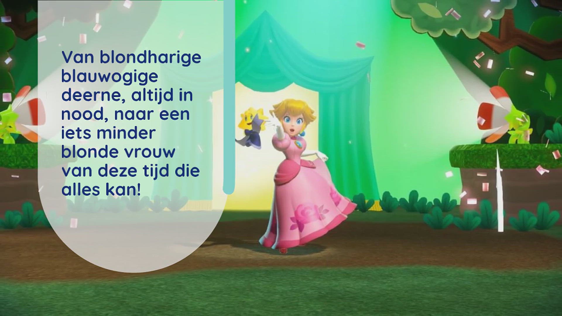 Van blondharige blauwogige deerne, altijd in nood, naar een iets minder blonde vrouw van deze tijd die alles kan! Dat is in het kort de levensloop van de geliefde Princess Peach. Voorheen moest ze altijd door Mario & co gered worden. En sinds vorig jaar weten wij dat juist deze prinses Mario geleerd heeft hoe hij het beste en zo snel mogelijk een obstakel parcours kan volstaan. Nog steeds heeft Bowser het op haar gemunt en is er soms een redding nodig, wat ook leuk is. Maar nu is er haar eigen game. Peach is de ster van haar eigen show in de game Princess Peach Showtime! Lees snel verder om alles van deze game te weten te komen.