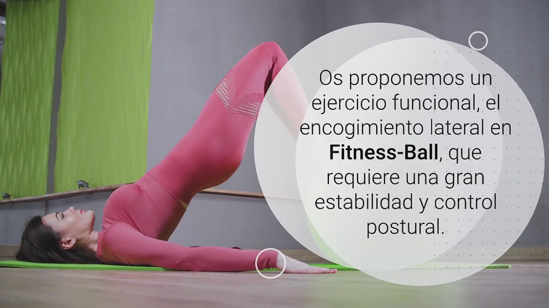 Hoy os proponemos un ejercicio funcional, el encogimiento lateral en Fitness-Ball, que requiere una gran estabilidad y control postural.