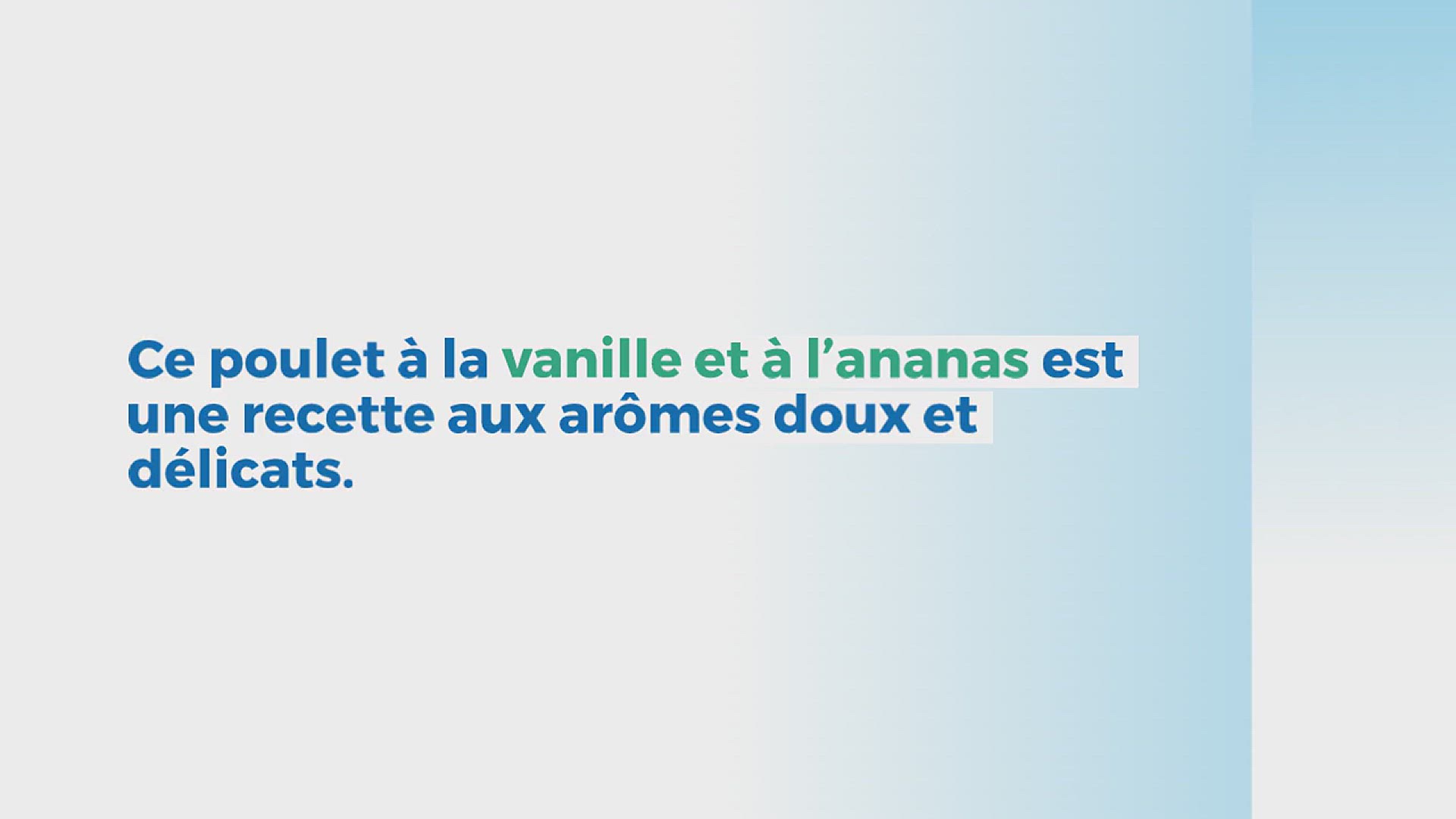 Ce poulet à la vanille et à l’ananas est une recette aux arômes doux et délicats. Afin d’obtenir cette jolie coloration, j’ai utilisé du curcuma dont les saveurs douces et suaves se marient très bien avec la vanille. Pour ne pas tomber dans le côté trop doux, j’ai apporté une note de fraîcheur ravigotante en final avec le gingembre moulu. L’ananas en cubes apporte un petit côté acidulé parfait !