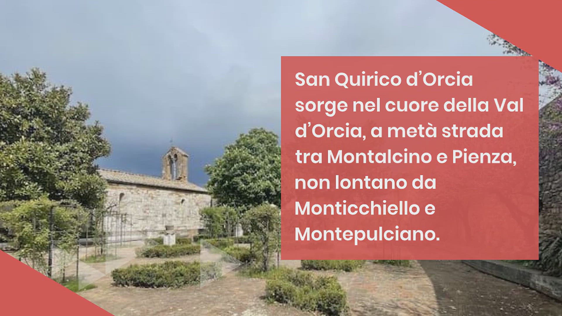 San Quirico d’Orcia sorge nel cuore della Val d’Orcia, a metà strada tra Montalcino e Pienza, non lontano da Monticchiello e Montepulciano. Antico centro etrusco, per molti secoli è stata attraversata senza continuità di sosta da pellegrini e mercanti, i primi diretti a Roma, i secondi a Firenze e Siena. Oggi, all’interno delle sue mura quattrocentesche, conserva ancora una deliziosa atmosfera medievale, tra sorprendenti giardini e pievi dal glorioso passato. Ma forse il meglio di sé lo regala all’esterno della cinta muraria, laddove è la natura a dettare legge.