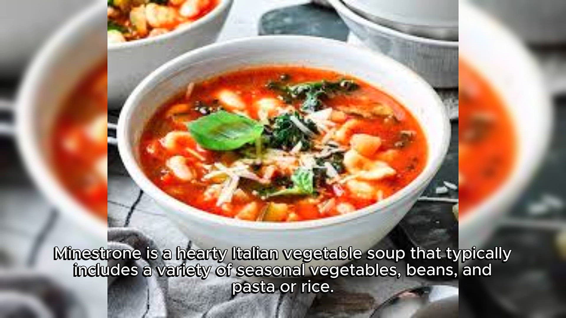 Minestrone is a thick, nutritious soup that typically features a variety of seasonal vegetables, beans, and small pasta or rice. It's known for its versatility, as ingredients can vary widely based on what’s available, making it a popular choice for using up leftovers.