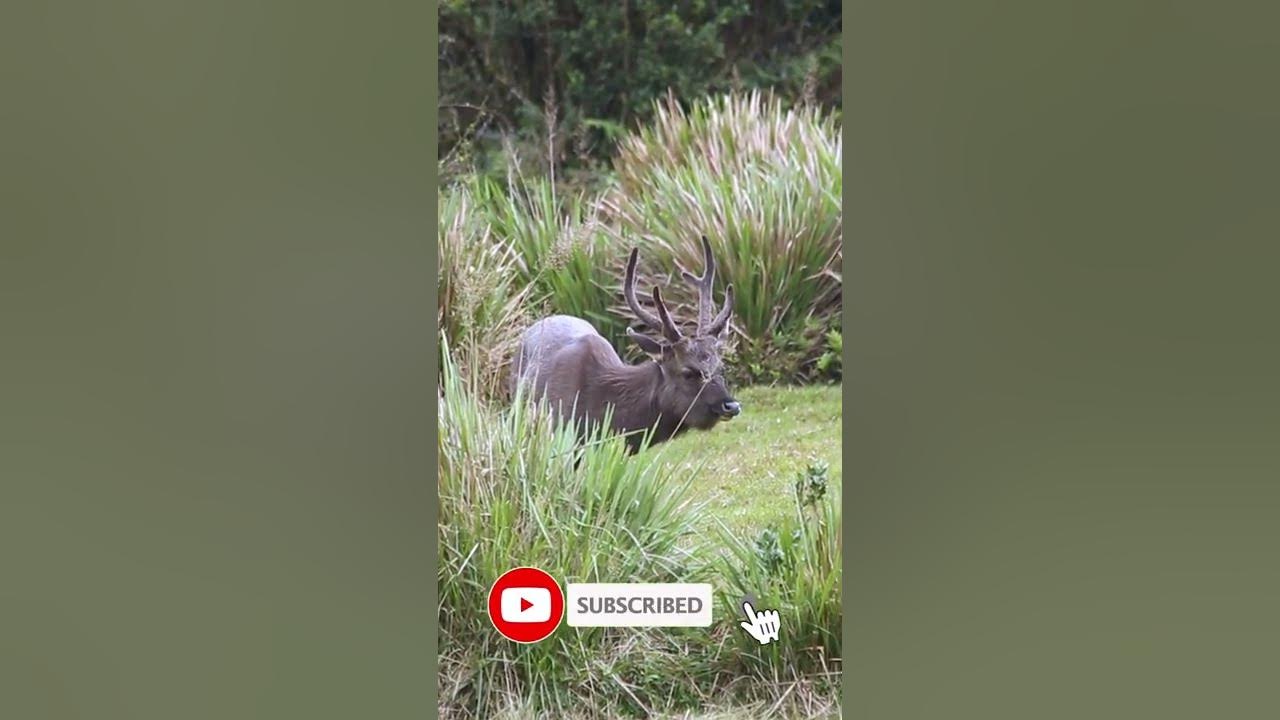 Beautiful samba stag grazing in Horton plains national park. The sambar is a large deer native to the Indian subcontinent and Southeast Asia that is listed as a vulnerable species on the IUCN Red List #shorts