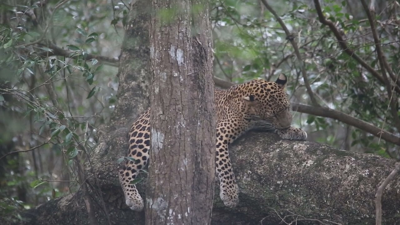 Leopard resting on a tree trunk in Wilpattu national park Sri Lanka #safari