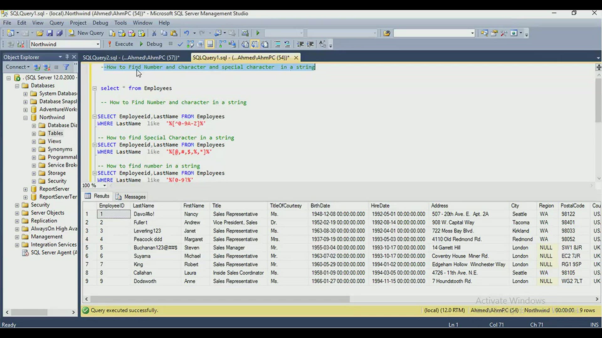 Find Special Character in a string using Sql
