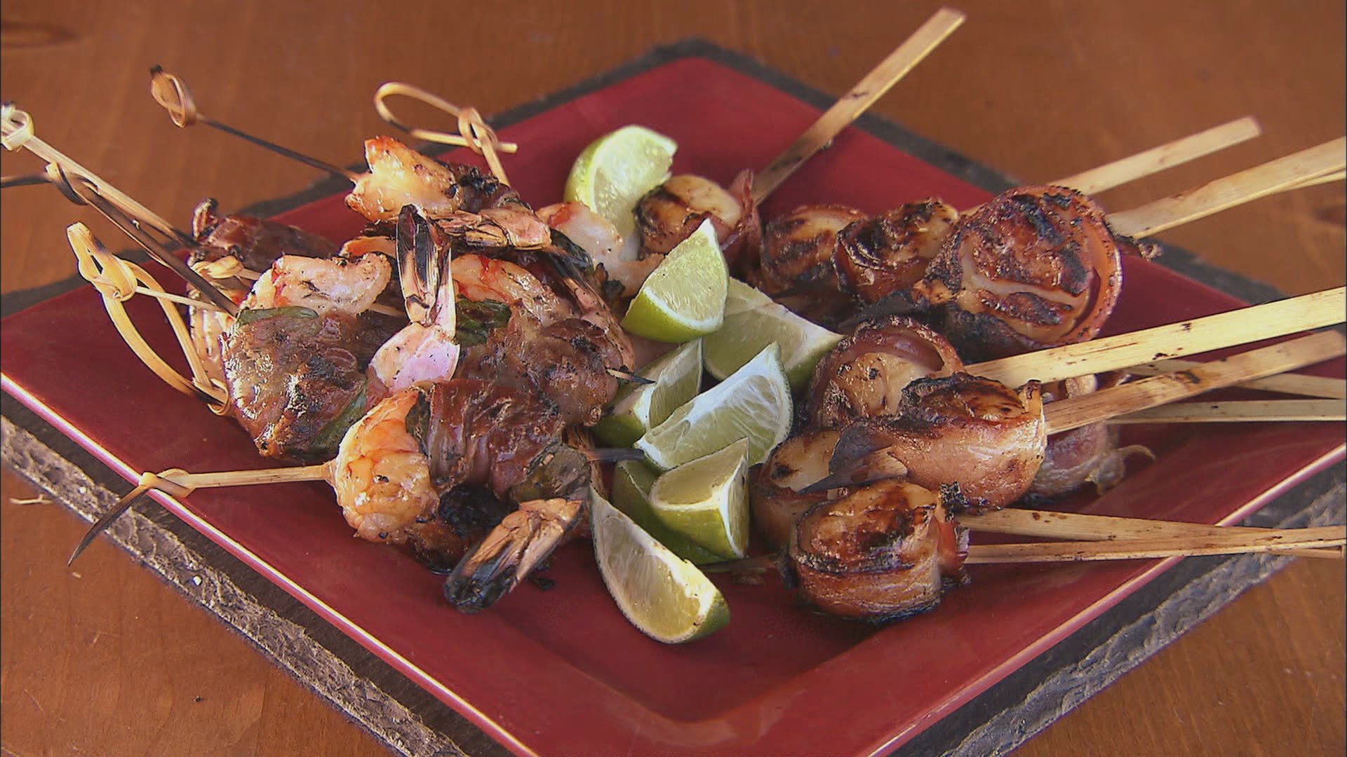 with a bamboo skewer. And there are your shrimp and the barbie