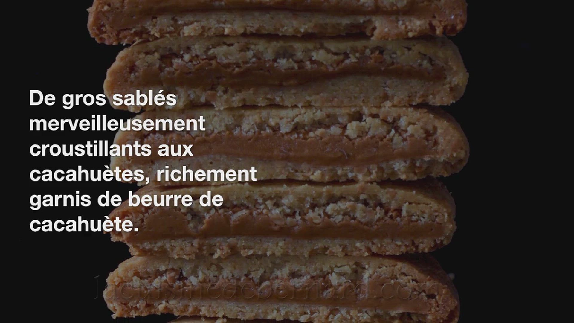 De gros sablés merveilleusement croustillants aux cacahuètes, richement garnis de beurre de cacahuète. Ce ne sont pas des cookies, car ils ne contiennent ni chocolat, ni œuf et la texture est bien différente. Ici, ça craque et ça croustille ! C’est sûr qu’il y a des chances pour que vous partagiez un sablé, quoique ! Mais je ne pense pas pouvoir aller plus loin dans le goût intense de la cacahuète, il s’agit donc d’une recette pour les fans inconditionnels de ce fruit sec !