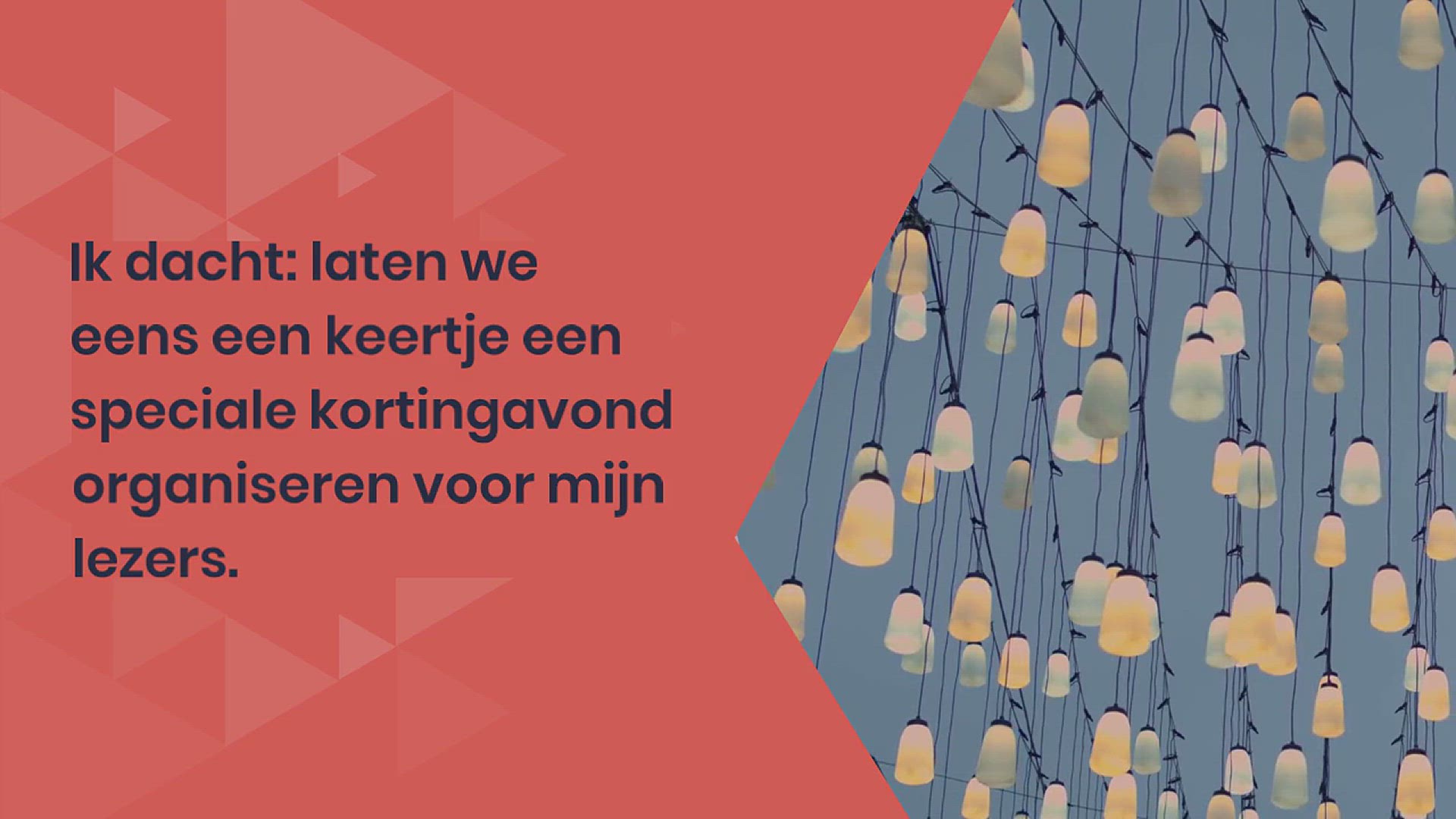 Ik dacht: laten we eens een keertje een speciale kortingavond organiseren voor mijn lezers. Dat zijn er toch elke dag wel een stuk of 1000, daar zitten er vast tussen die dit een goed plan vinden.