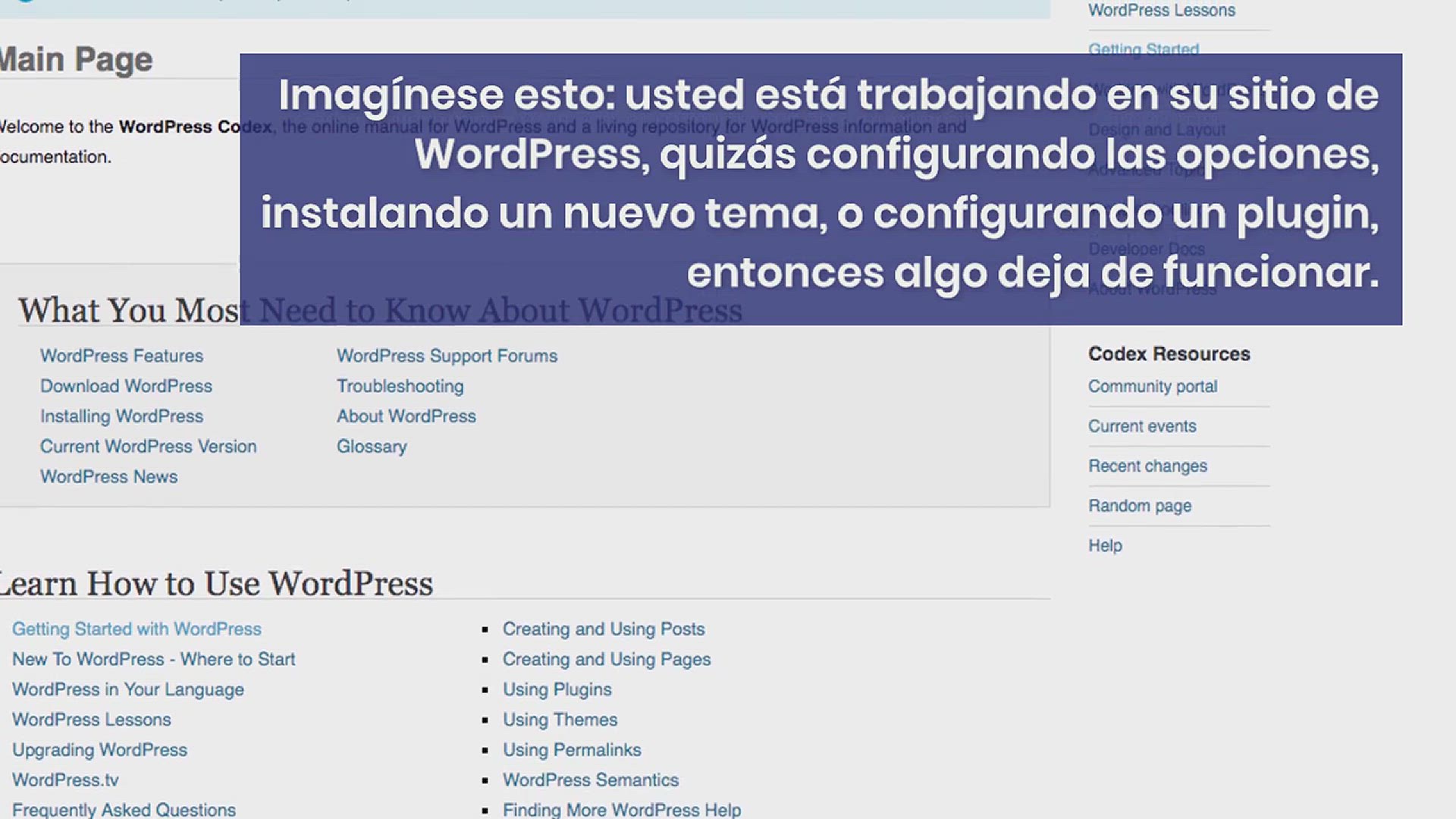 Imagínese esto: usted está trabajando en su sitio de WordPress, quizás configurando las opciones, instalando un nuevo tema, o configurando un plugin, entonces algo deja de funcionar. Ahora está atorado y necesita arreglar las cosas.