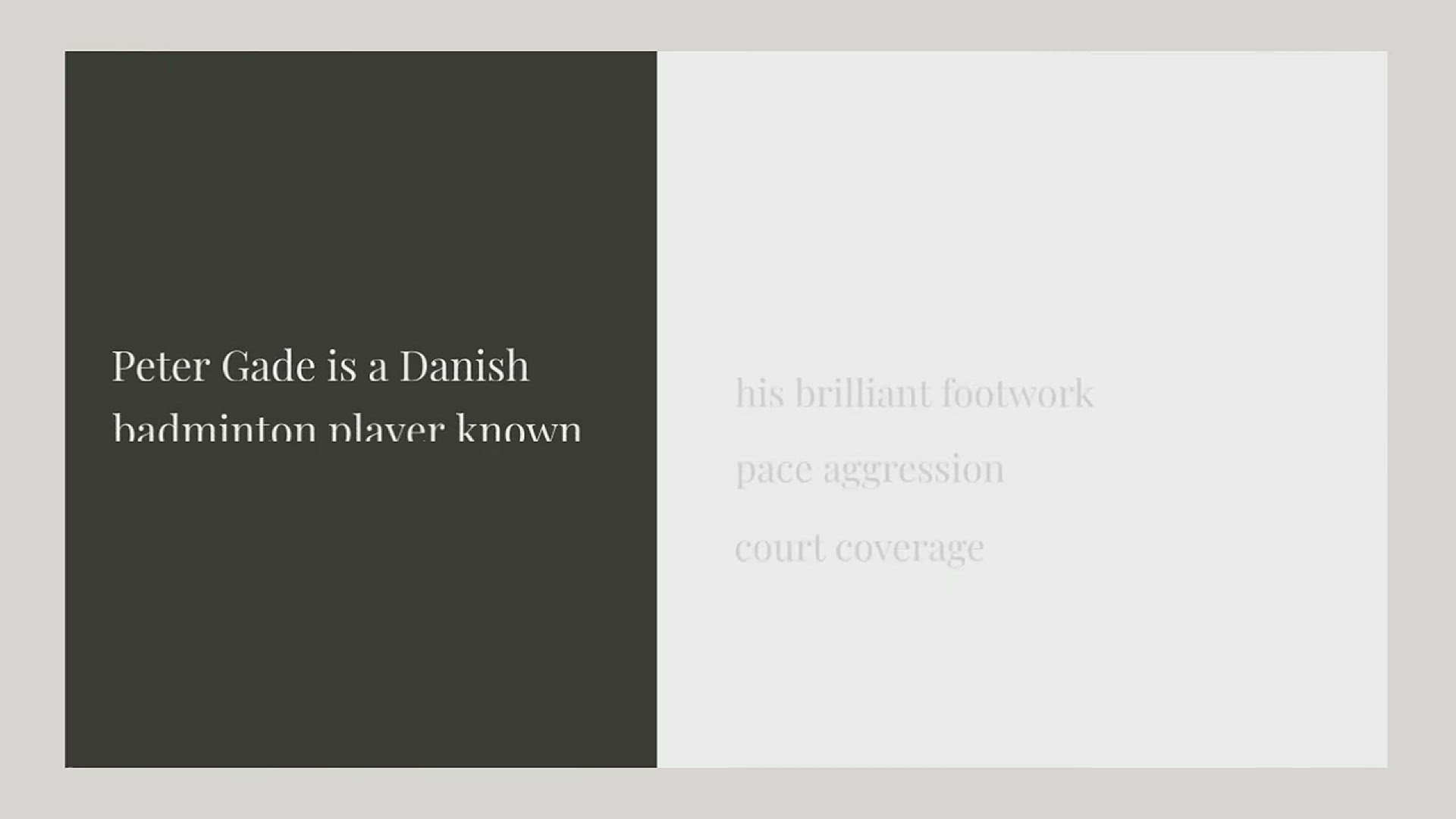 Peter Gade is a Danish badminton player known for his brilliant footwork, pace aggression, and court coverage. Full name: Peter Hoeg Gade