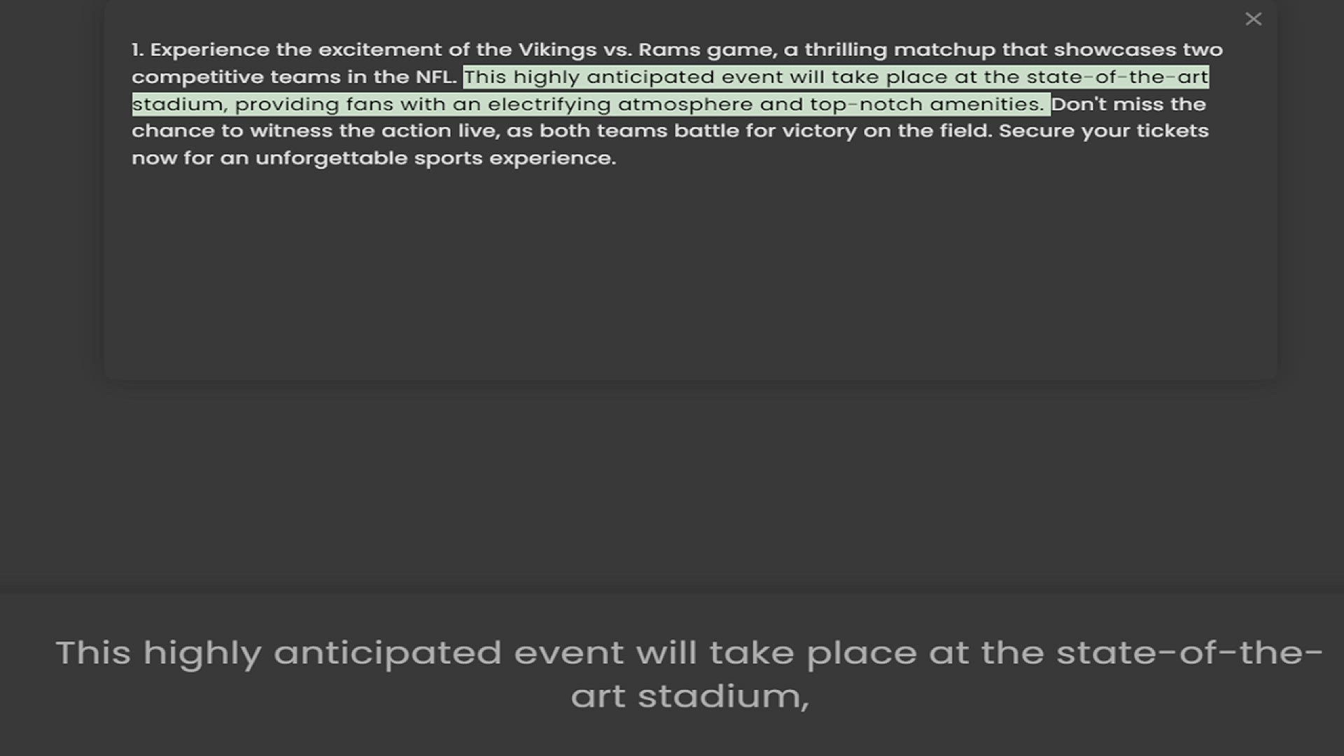 competitive teams in the NFL. This highly anticipated event will take place at the state-of-the-art stadium, providing fans with an electrifying atmosphere and top-notch amenities. Don't miss the chance to witness the action live, as