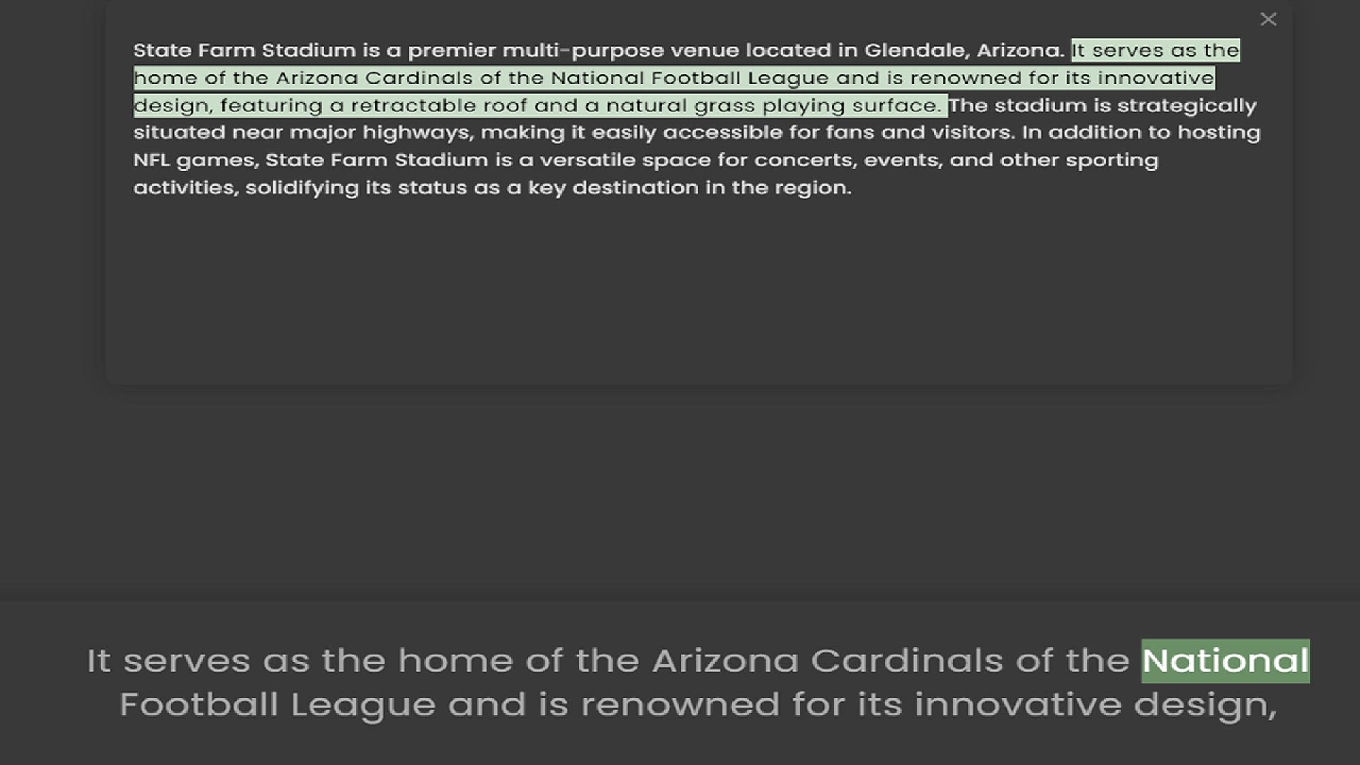 home of the Arizona Cardinals of the National Football League and is renowned for its innovative design, featuring a retractable roof and a natural grass playing surface. The stadium is strategically situated near major highways, maki