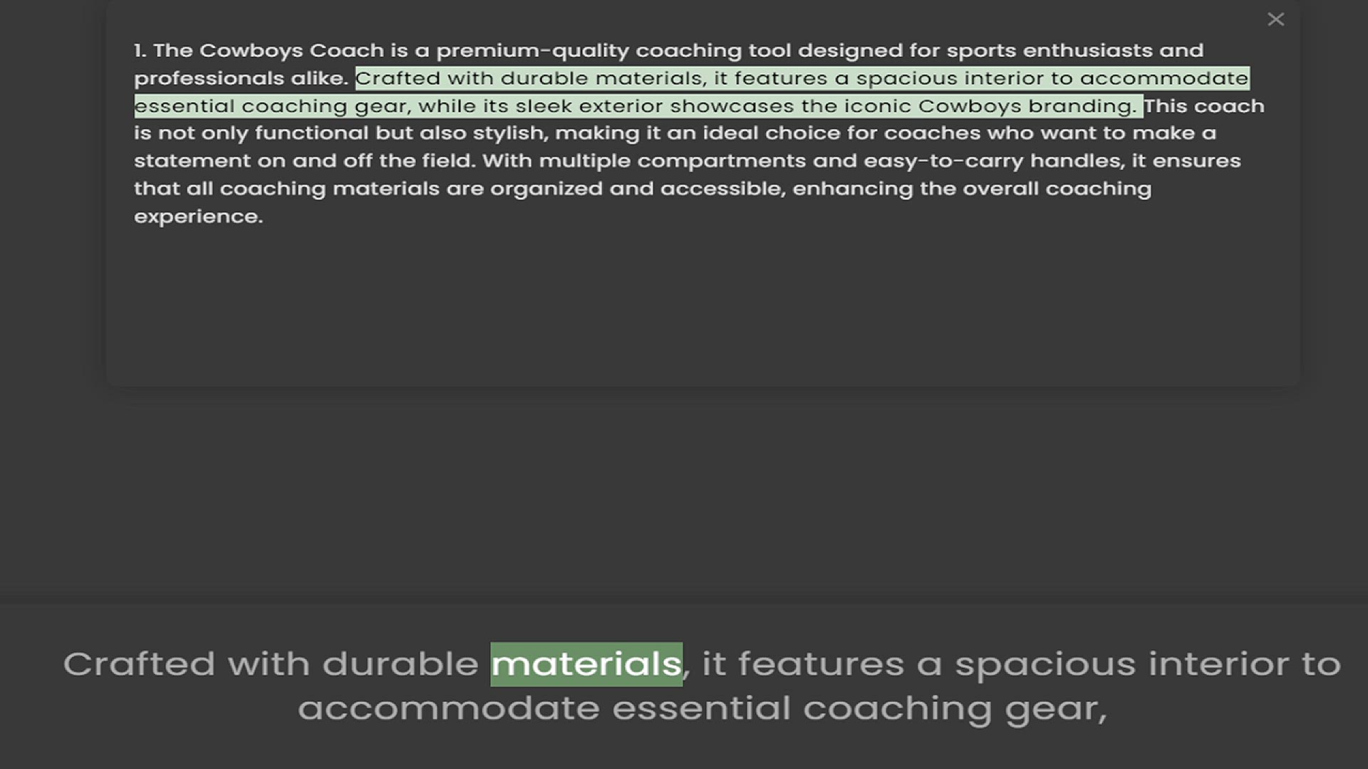 professionals alike. Crafted with durable materials, it features a spacious interior to accommodate essential coaching gear, while its sleek exterior showcases the iconic Cowboys branding. This coach is not only functional but also stylis