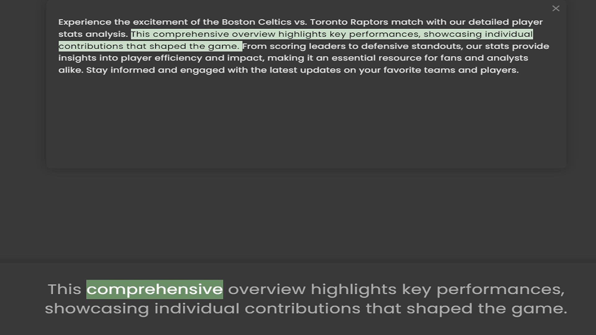 stats analysis. This comprehensive overview highlights key performances, showcasing individual contributions that shaped the game. From scoring leaders to defensive standouts, our stats provide insights into player efficiency and impact,