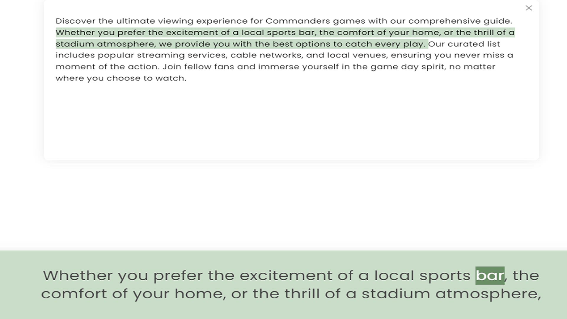 Whether you prefer the excitement of a local sports bar, the comfort of your home, or the thrill of a stadium atmosphere, we provide you with the best options to catch every play. Our curated list includes popular streaming services, cabl