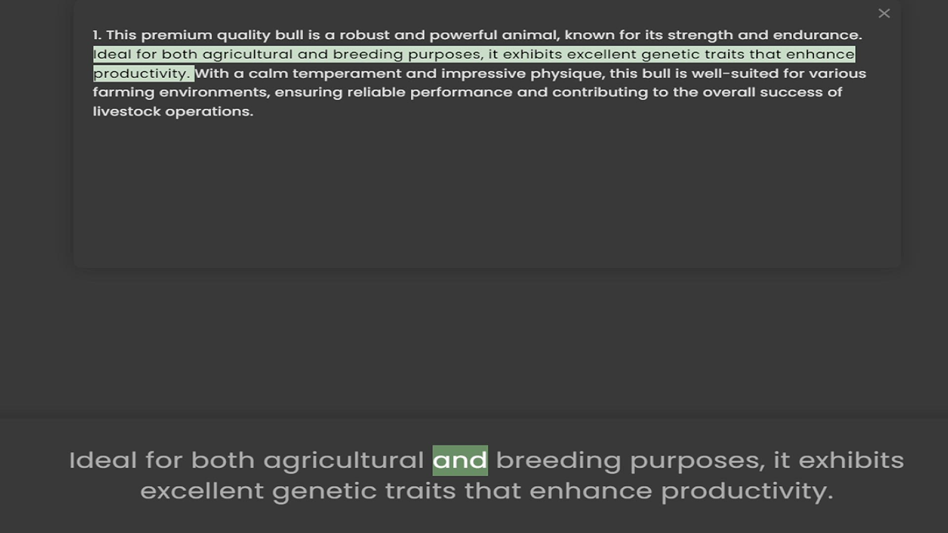 1. This premium quality bull is a robust and powerful animal, known for its strength and endurance. Ideal for both agricultural and breeding purposes, it exhibits excellent genetic traits that enhance productivity. With a calm temperament