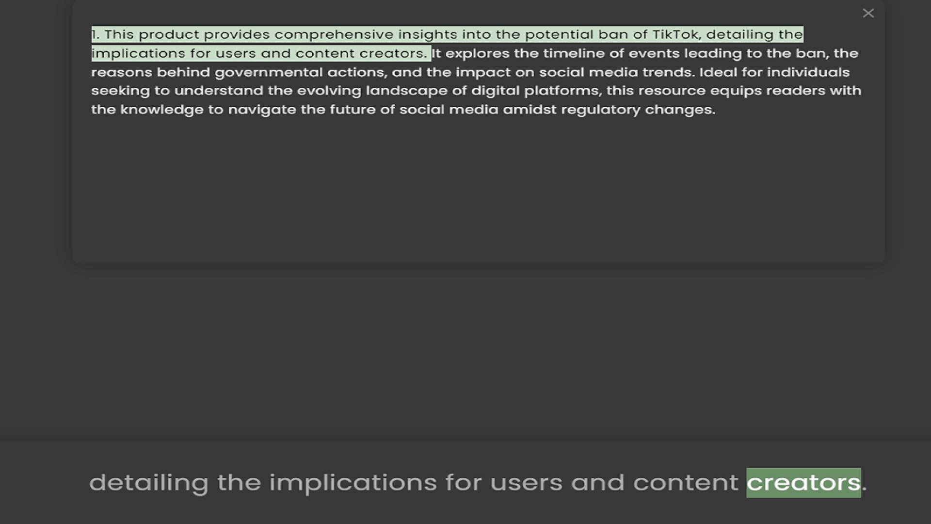 1. This product provides comprehensive insights into the potential ban of TikTok, detailing the implications for users and content creators. It explores the timeline of events leading to the ban, the reasons behind governmental actions, a