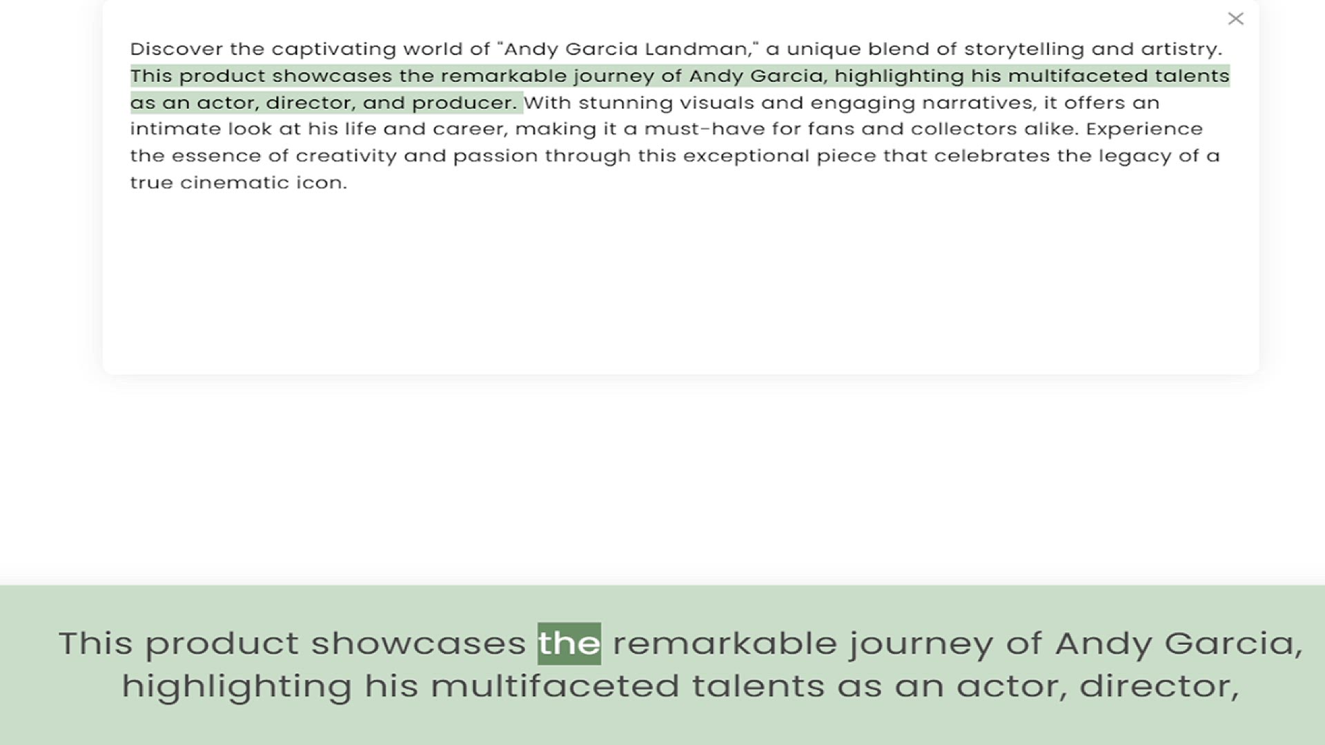 This product showcases the remarkable journey of Andy Garcia, highlighting his multifaceted talents as an actor, director, and producer. With stunning visuals and engaging narratives, it offers an intimate look at his life and career, mak