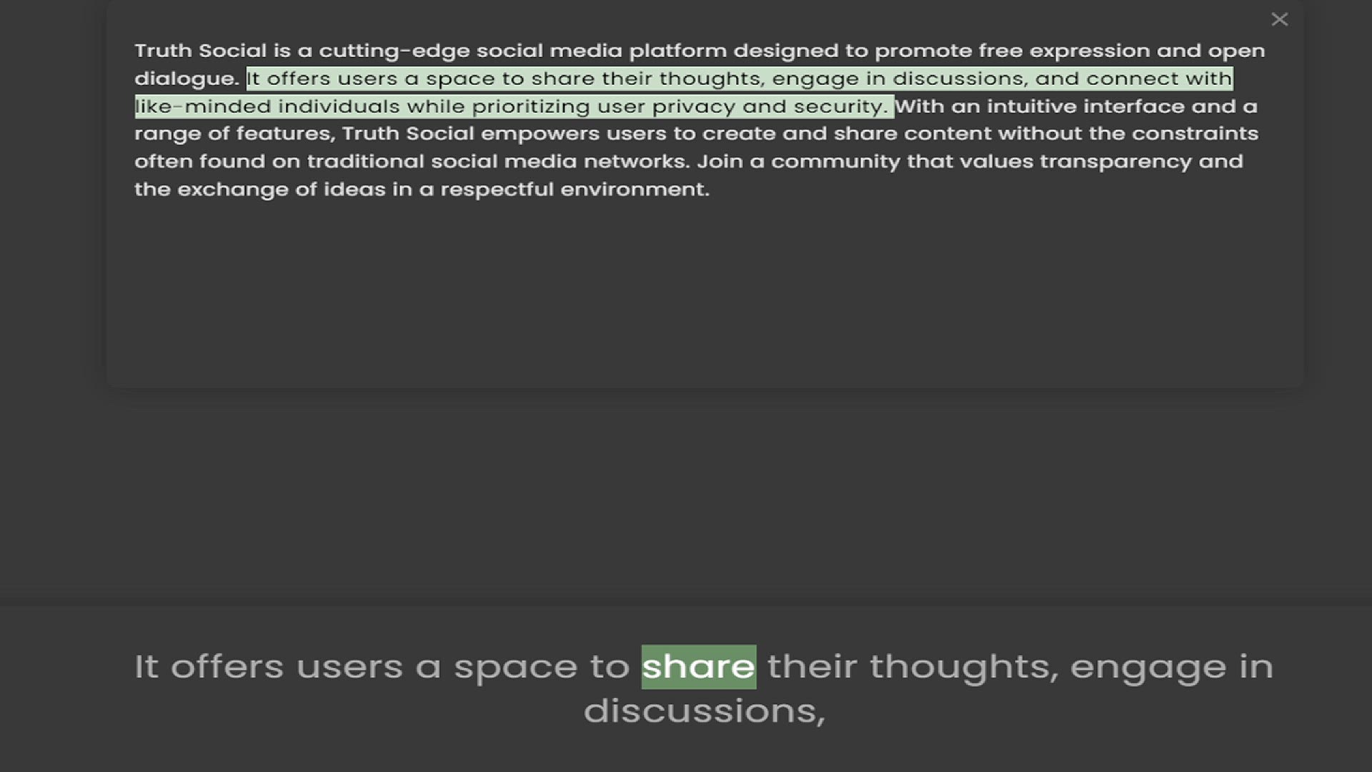 dialogue. It offers users a space to share their thoughts, engage in discussions, and connect with like-minded individuals while prioritizing user privacy and security. With an intuitive interface and a range of features, Truth Social emp