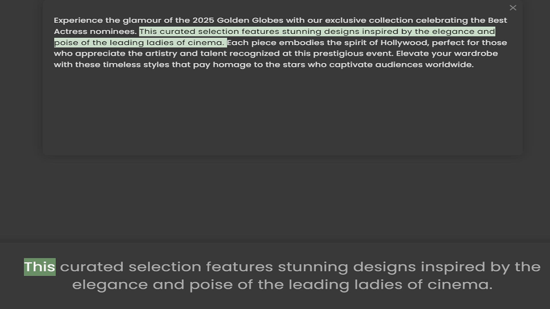 Actress nominees. This curated selection features stunning designs inspired by the elegance and poise of the leading ladies of cinema. Each piece embodies the spirit of Hollywood, perfect for those who appreciate the artistry and talent r