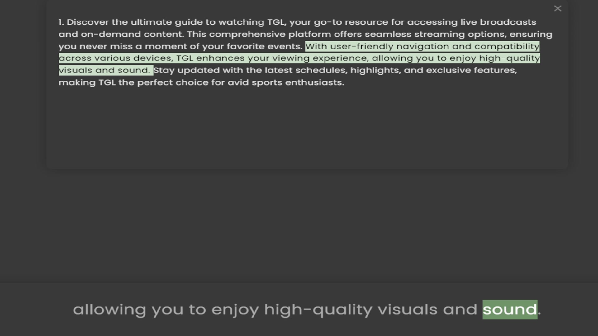 and on-demand content. This comprehensive platform offers seamless streaming options, ensuring you never miss a moment of your favorite events. With user-friendly navigation and compatibility across various devices, TGL enhances your view