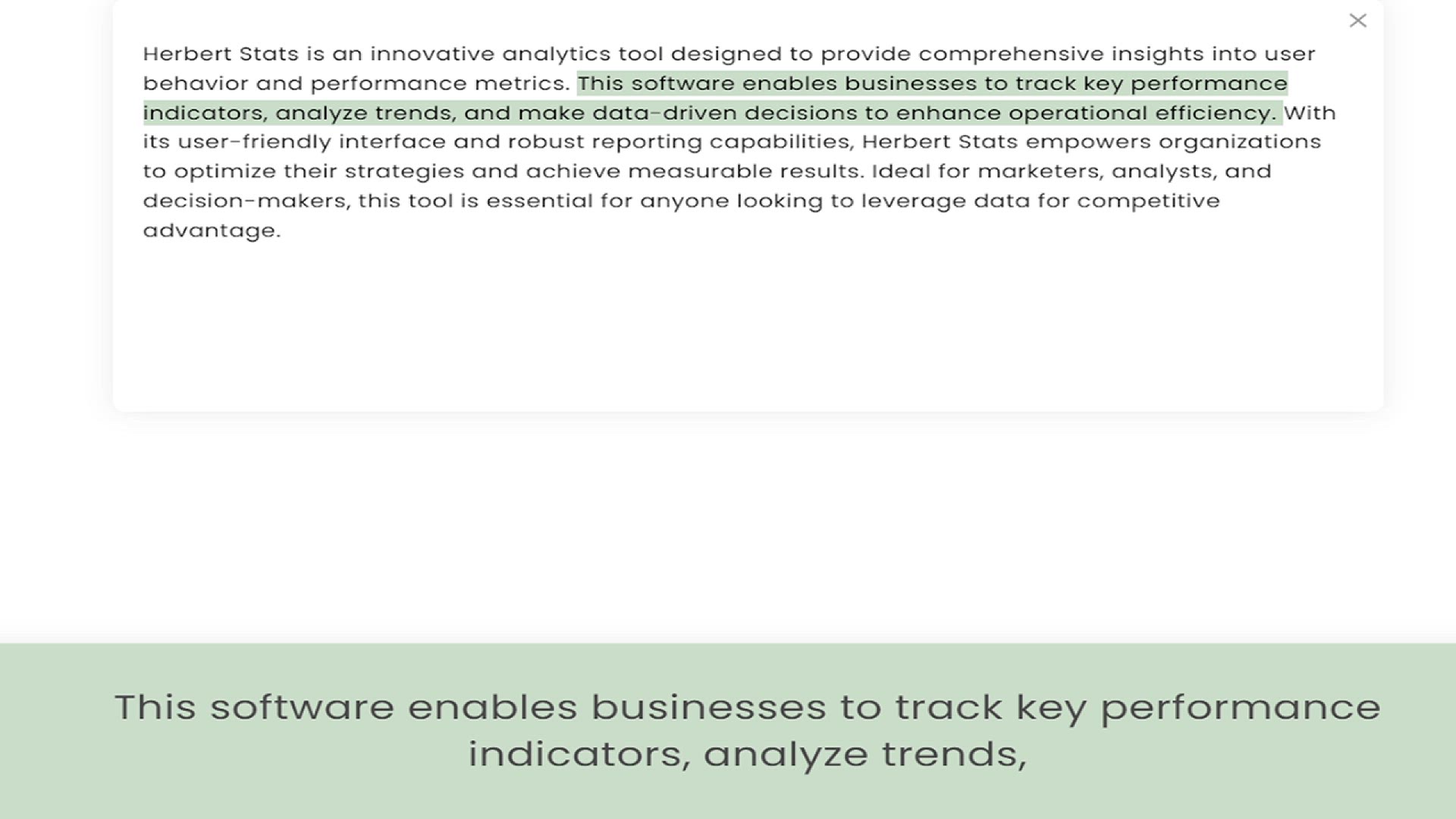 behavior and performance metrics. This software enables businesses to track key performance indicators, analyze trends, and make data-driven decisions to enhance operational efficiency. With its user-friendly interface and robust reportin