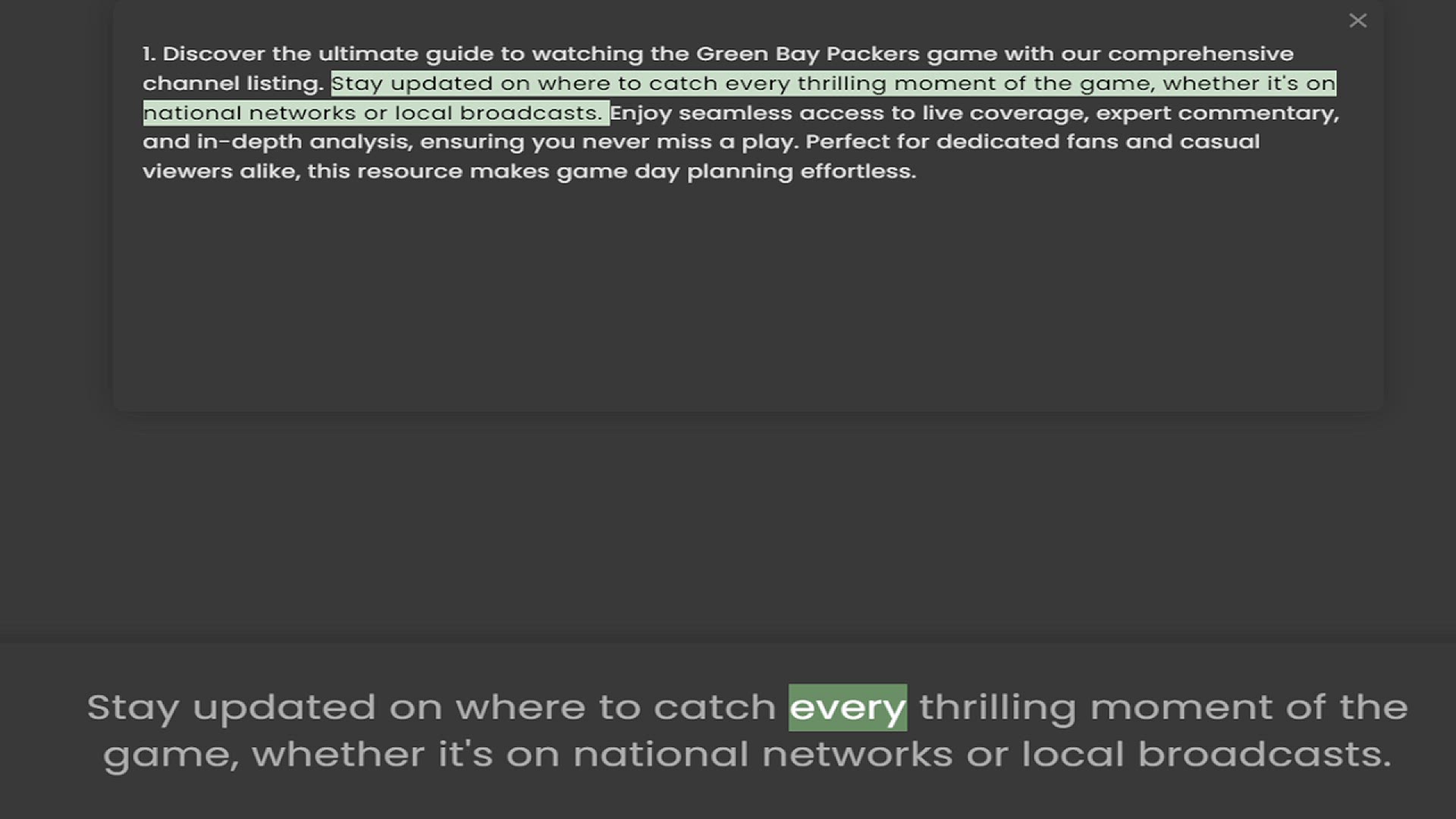 channel listing. Stay updated on where to catch every thrilling moment of the game, whether it's on national networks or local broadcasts. Enjoy seamless access to live coverage, expert commentary, and in-depth analysis, ensuring you neve