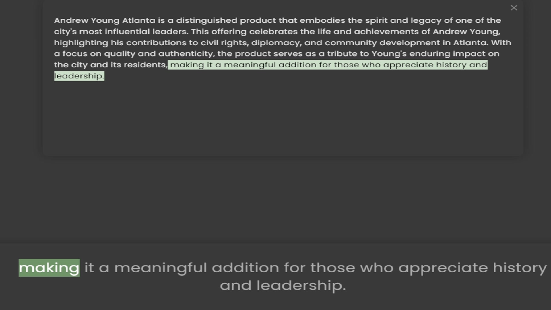 city's most influential leaders. This offering celebrates the life and achievements of Andrew Young, highlighting his contributions to civil rights, diplomacy, and community development in Atlanta. With a focus on quality and authenticity