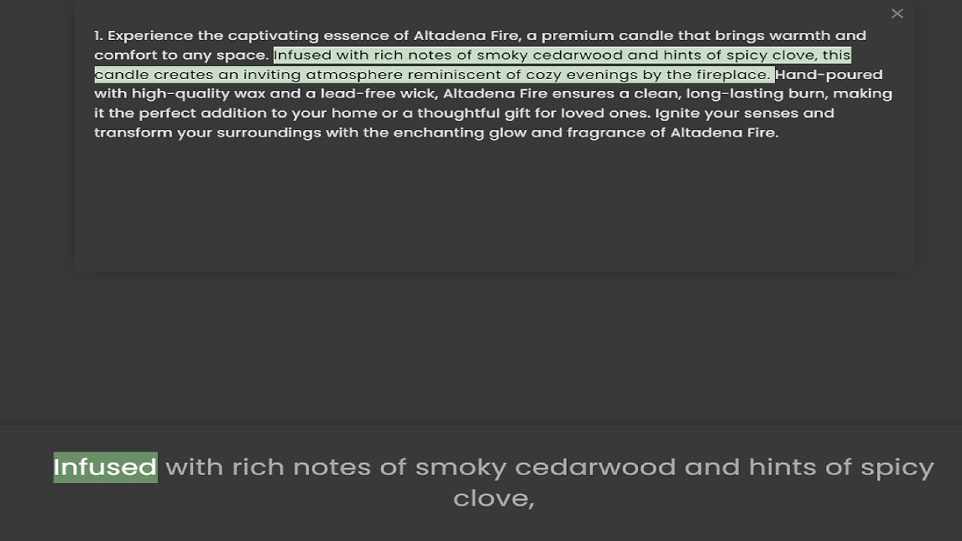 comfort to any space. Infused with rich notes of smoky cedarwood and hints of spicy clove, this candle creates an inviting atmosphere reminiscent of cozy evenings by the fireplace. Hand-poured with high-quality wax and a lead-free wick, A