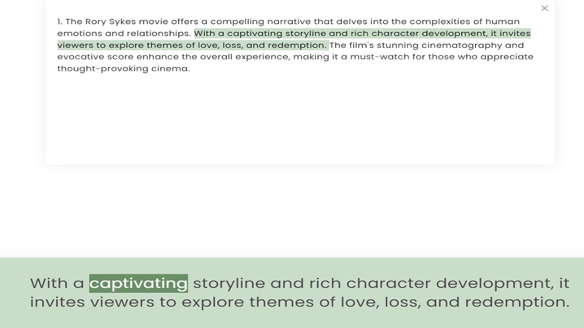 emotions and relationships. With a captivating storyline and rich character development, it invites viewers to explore themes of love, loss, and redemption. The film's stunning cinematography and evocative score enhance the overall experi