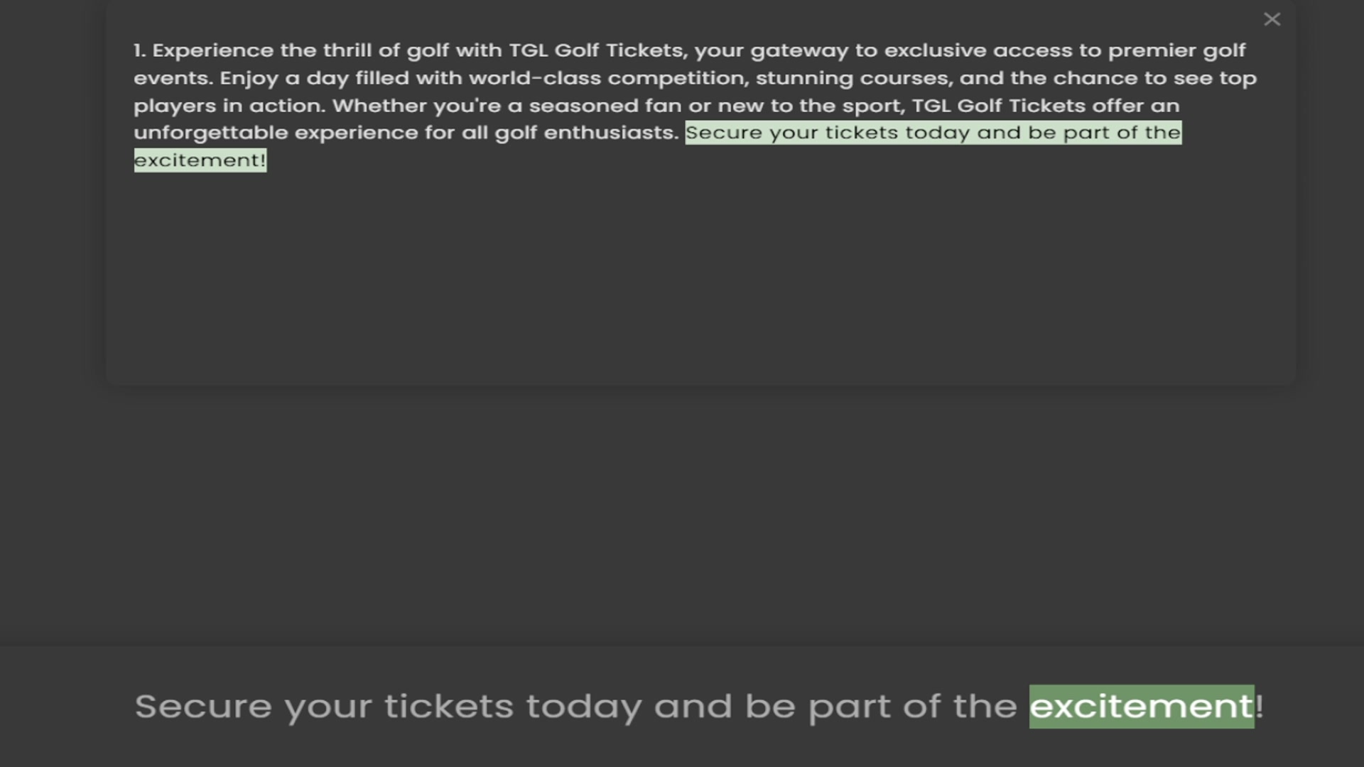 events. Enjoy a day filled with world-class competition, stunning courses, and the chance to see top players in action. Whether you're a seasoned fan or new to the sport, TGL Golf Tickets offer an unforgettable experience for all golf ent