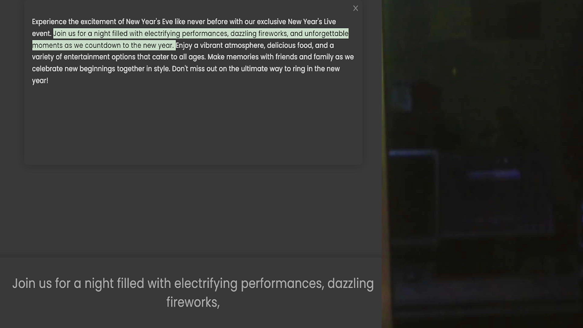 Experience the excitement of New Year's Eve like never before with our exclusive New Year's Live event. Join us for a night filled with electrifying performances, dazzling fireworks, and unforgettable moments as we countdown to the new ye