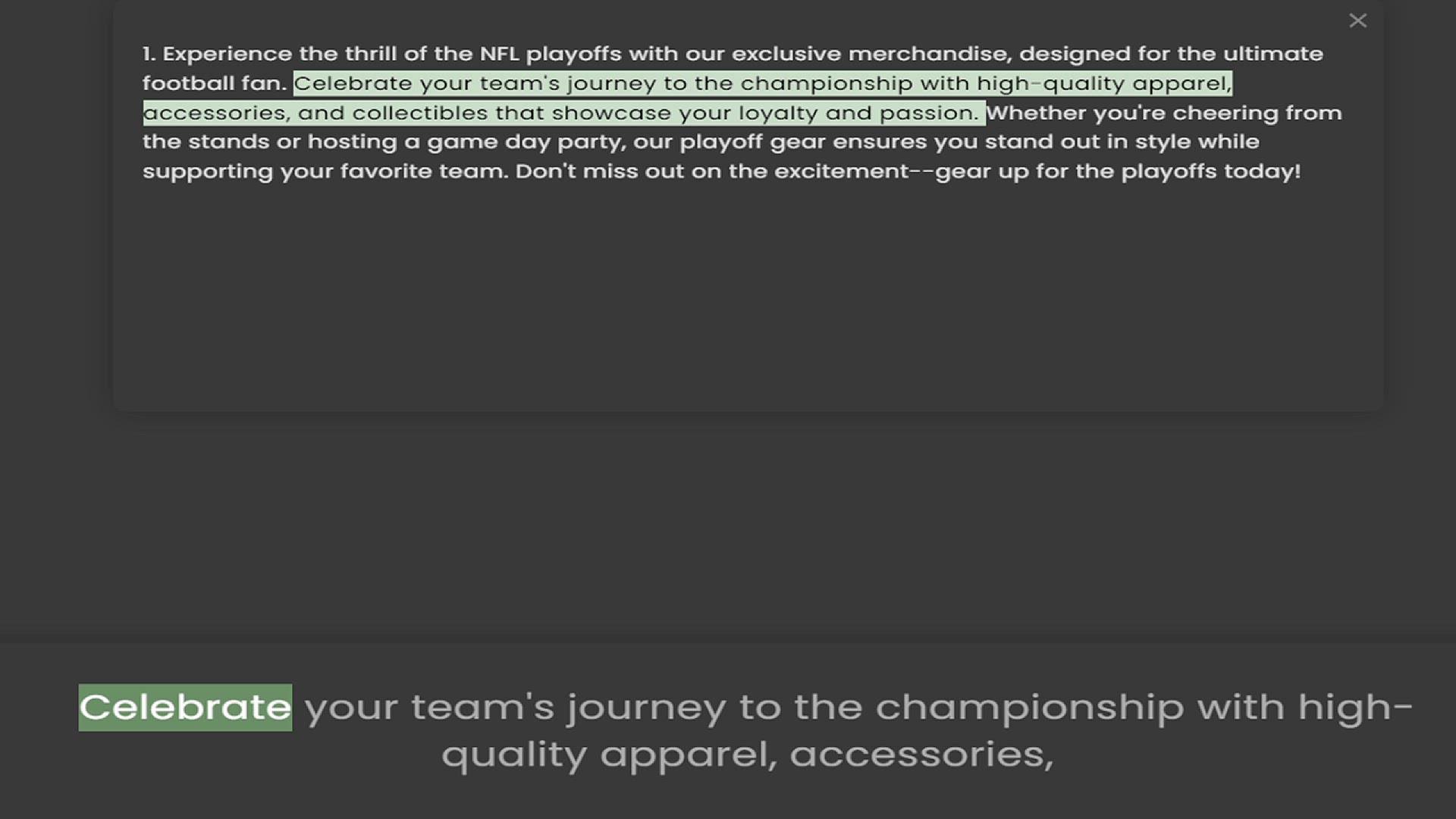football fan. Celebrate your team's journey to the championship with high-quality apparel, accessories, and collectibles that showcase your loyalty and passion. Whether you're cheering from the stands or hosting a game day party, our play