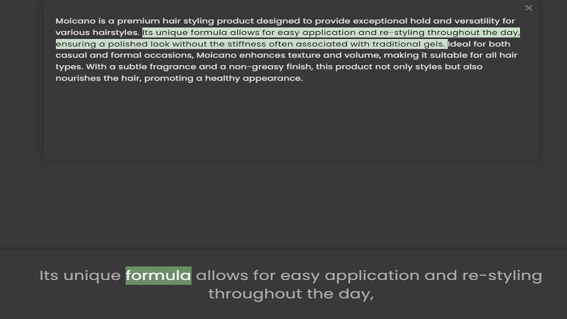Moicano is a premium hair styling product designed to provide exceptional hold and versatility for various hairstyles. Its unique formula allows for easy application and re-styling throughout the day, ensuring a polished look without the