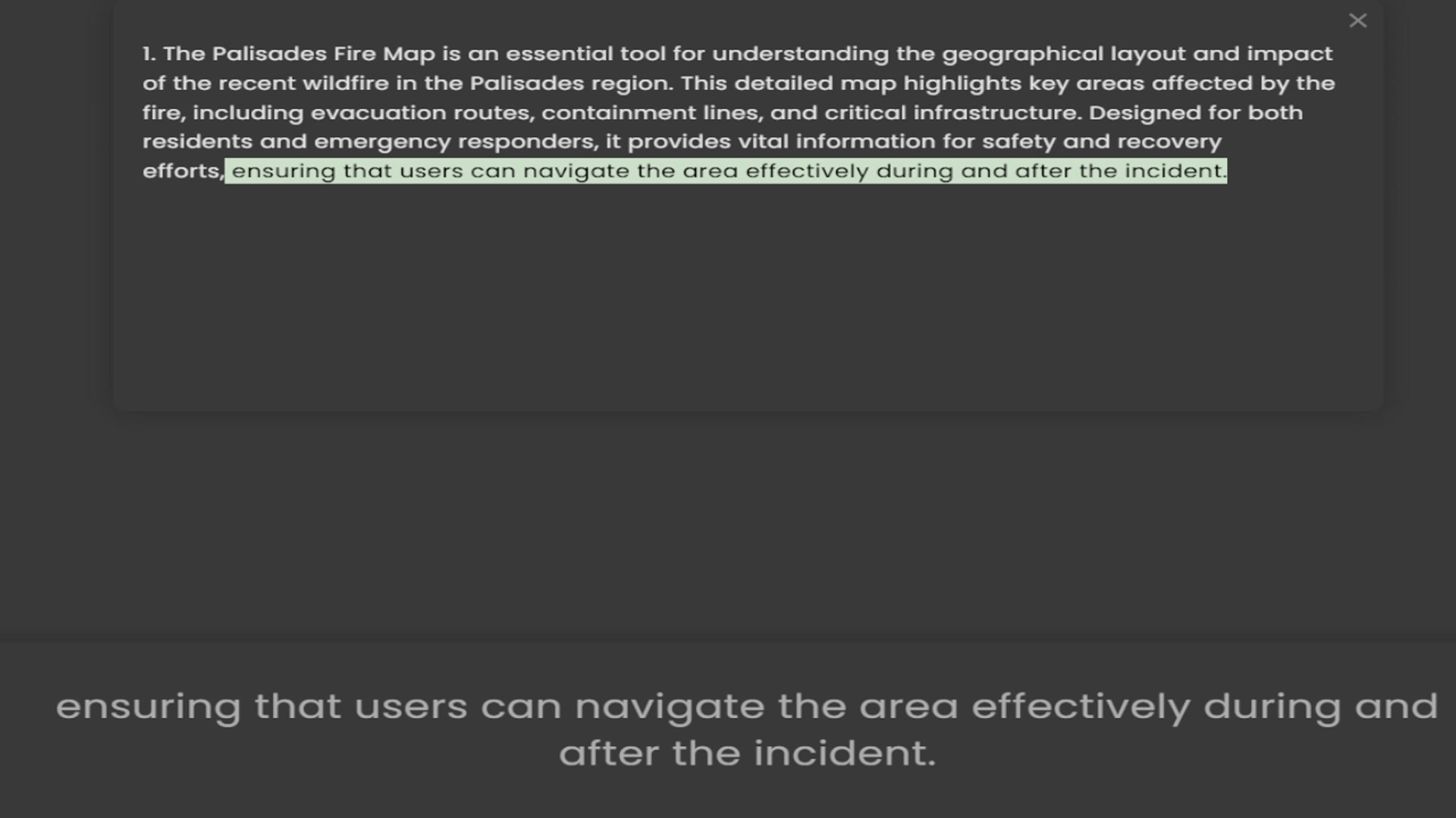 of the recent wildfire in the Palisades region. This detailed map highlights key areas affected by the fire, including evacuation routes, containment lines, and critical infrastructure. Designed for both residents and emergency responders