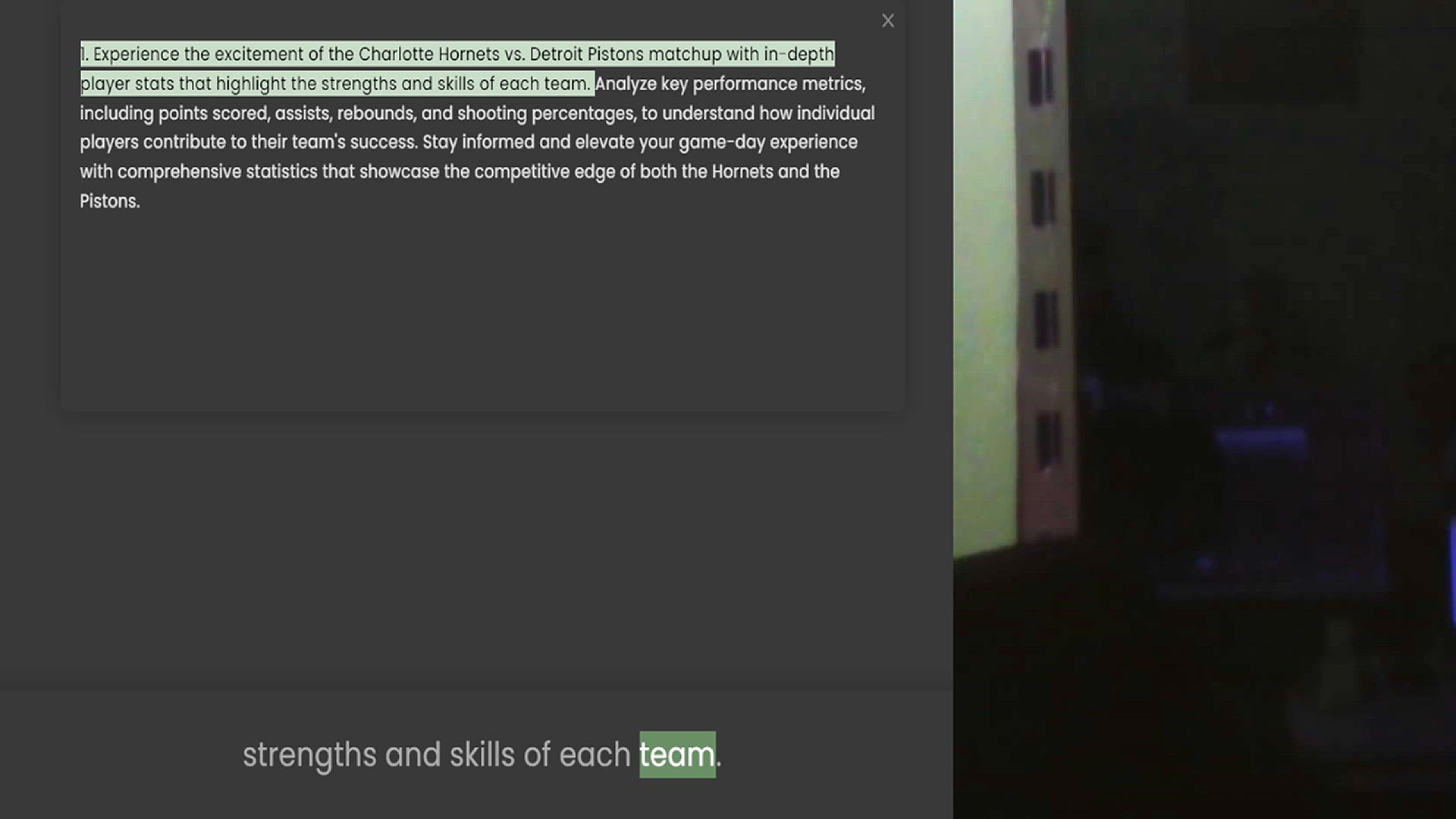 player stats that highlight the strengths and skills of each team. Analyze key performance metrics, including points scored, assists, rebounds, and shooting percentages, to understand how individual players contribute to their team's succ