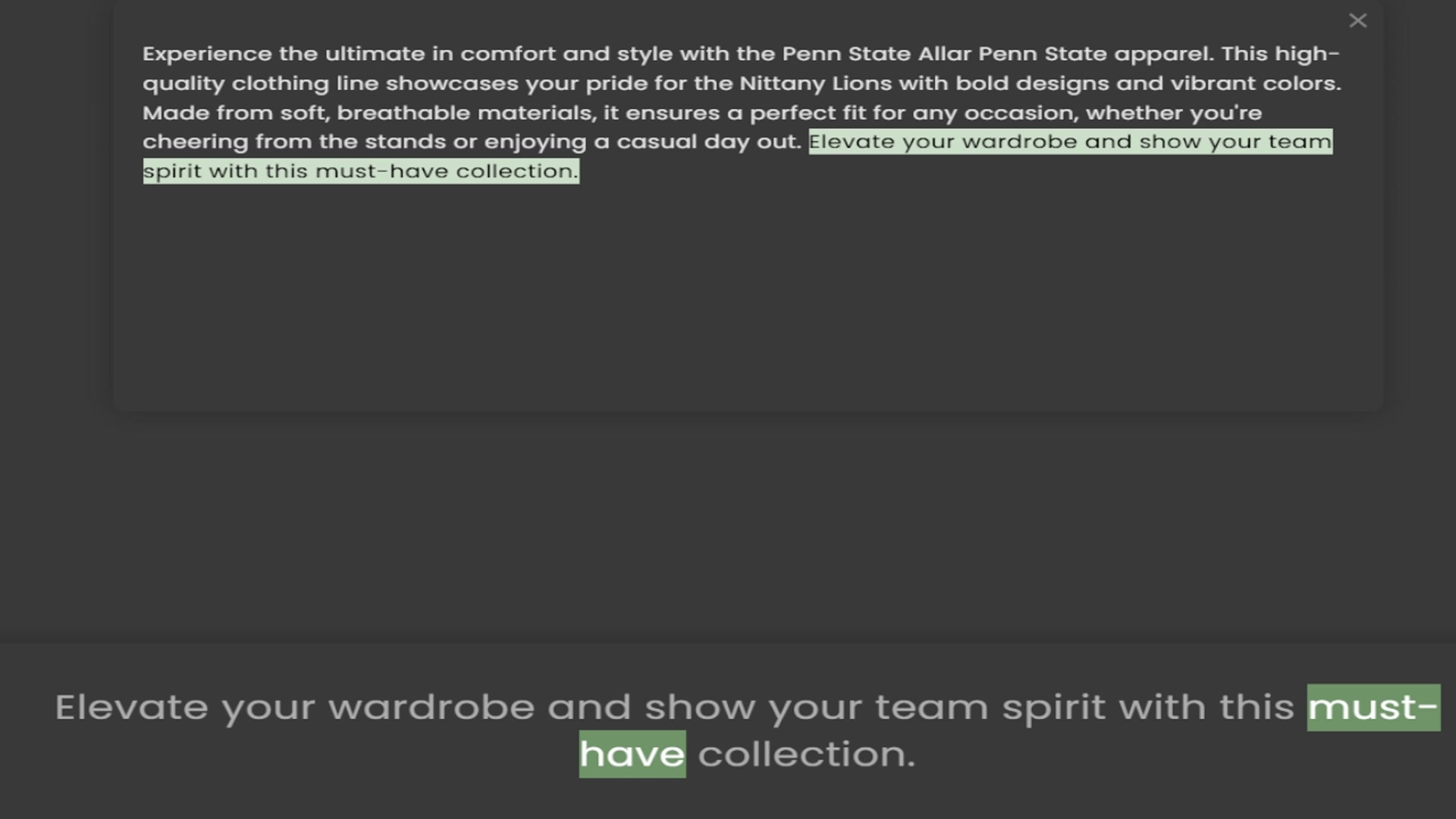 quality clothing line showcases your pride for the Nittany Lions with bold designs and vibrant colors. Made from soft, breathable materials, it ensures a perfect fit for any occasion, whether you're cheering from the stands or enjoying a