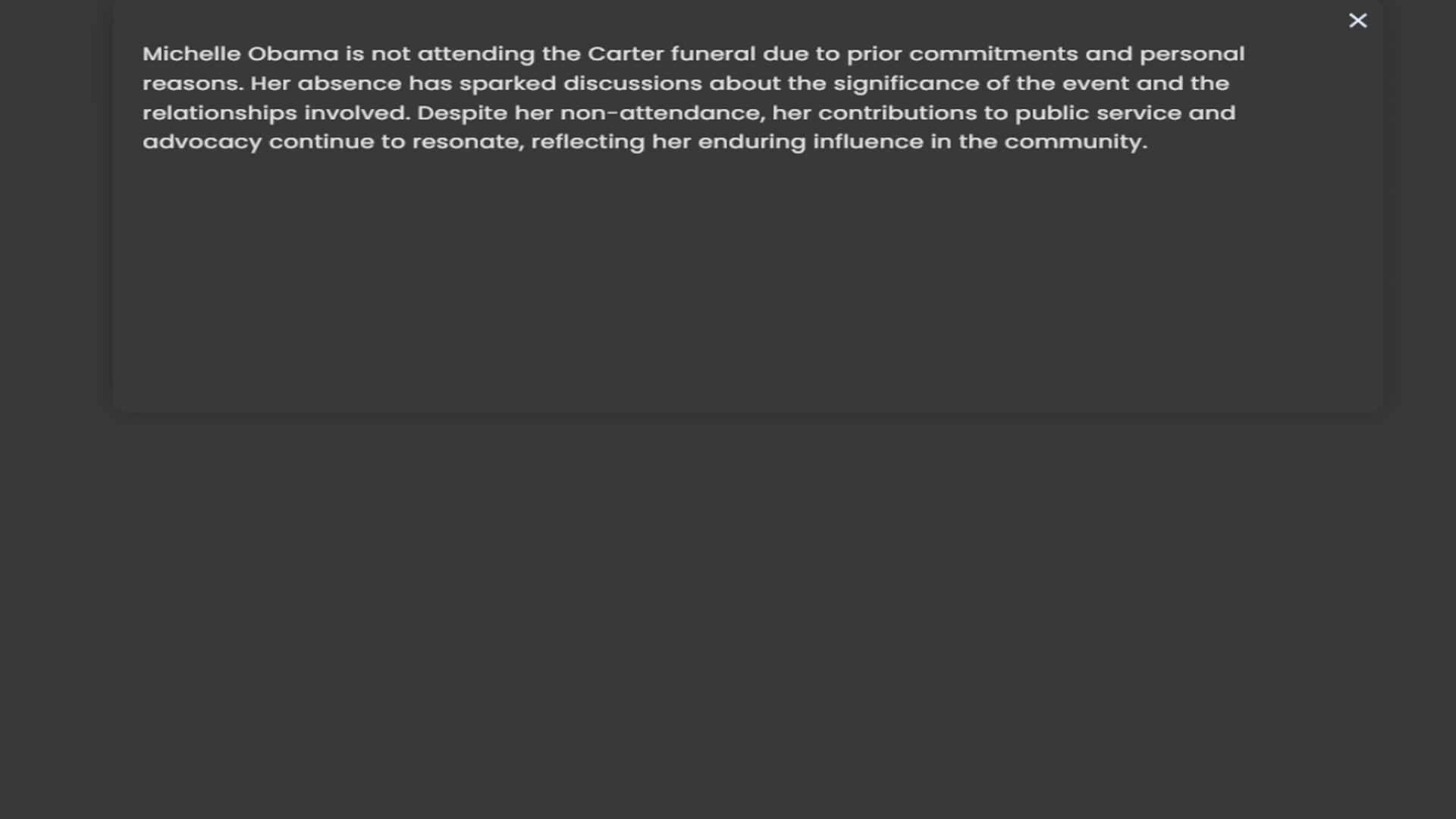 reasons. Her absence has sparked discussions about the significance of the event and the relationships involved. Despite her non-attendance, her contributions to public service and advocacy continue to resonate, reflecting her enduring in